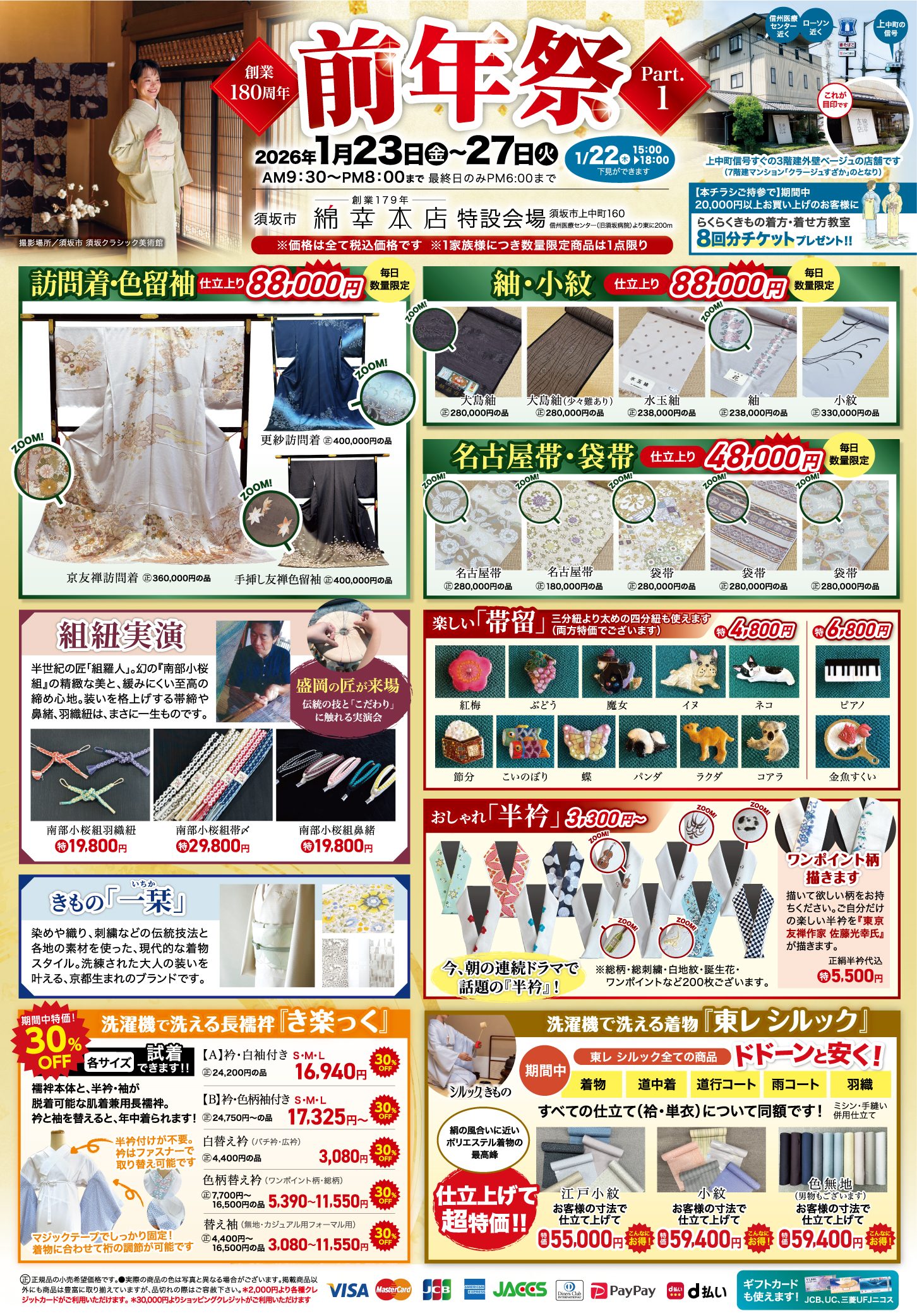 1月23日(金)から1月27日(火)まで「創業180周年『前年祭』Part1」SALEを開催致します。