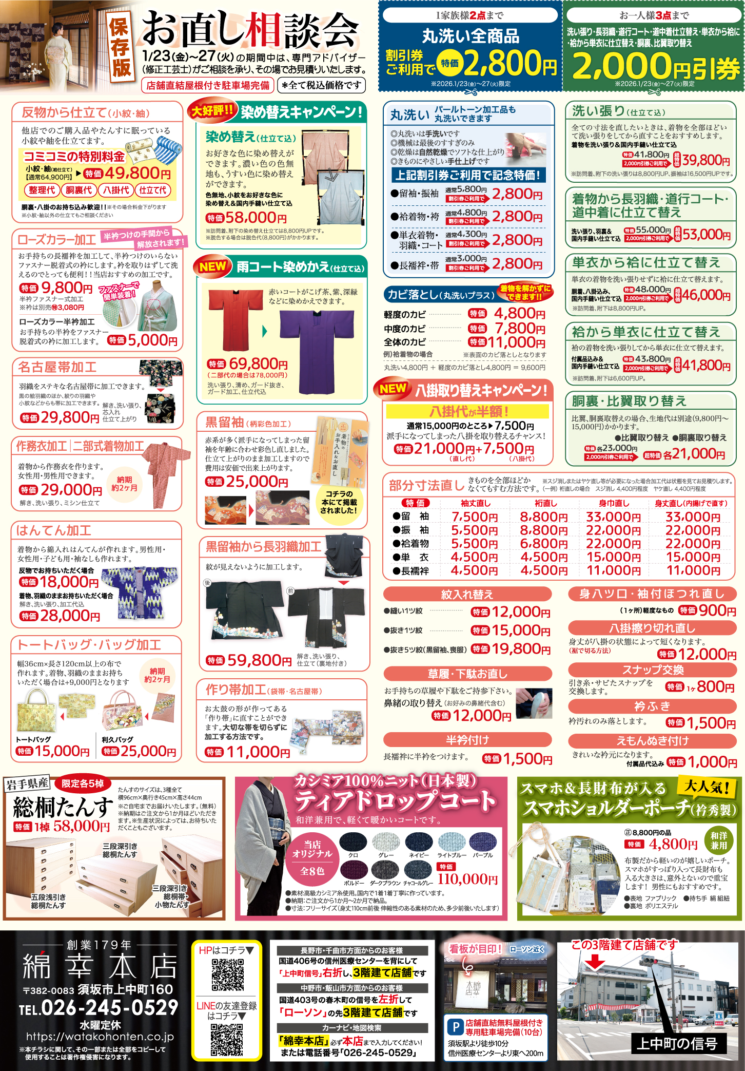 長野県 須坂 着物 帯の綿幸本店「蔵の町のきもの屋です」
