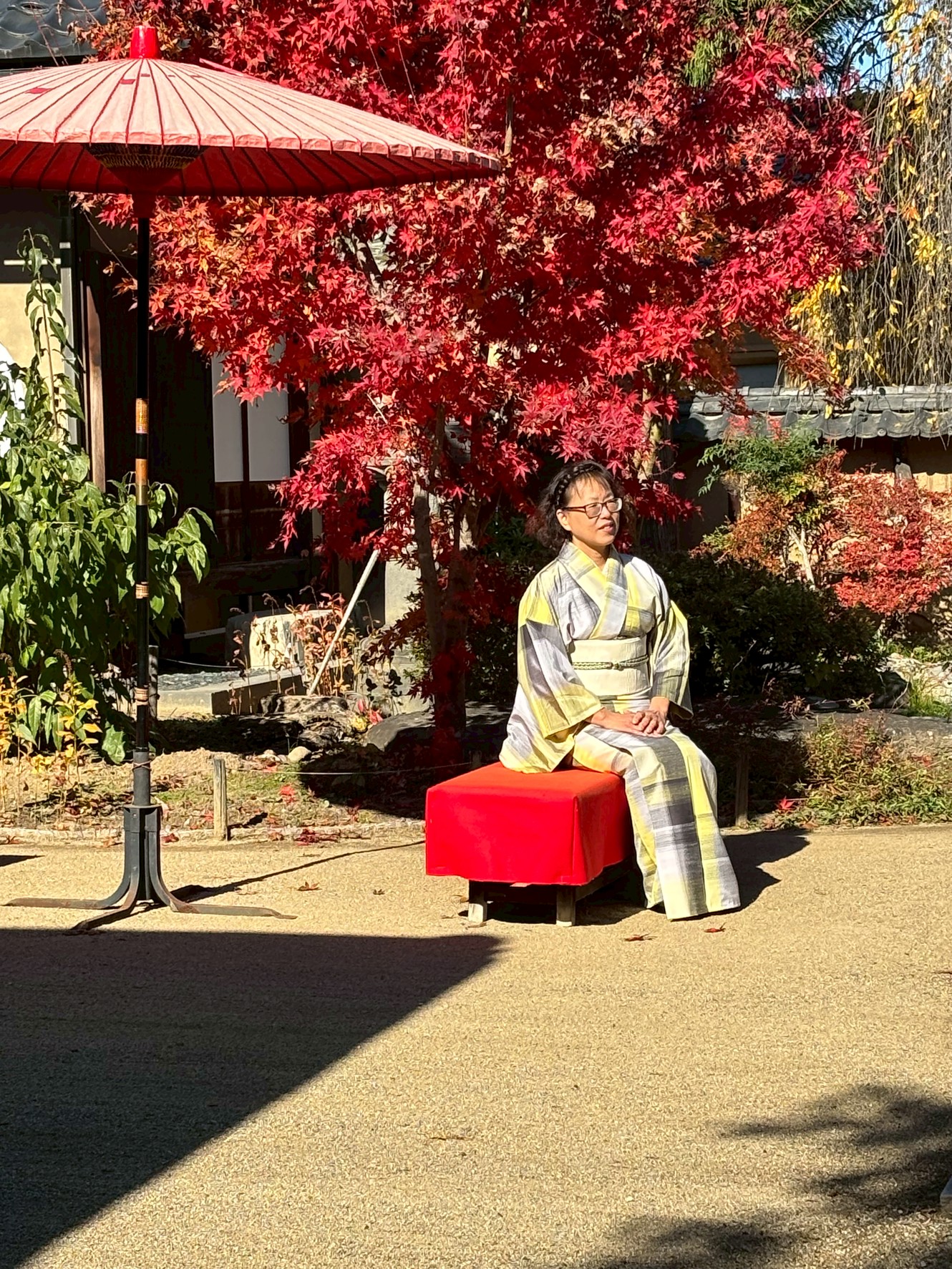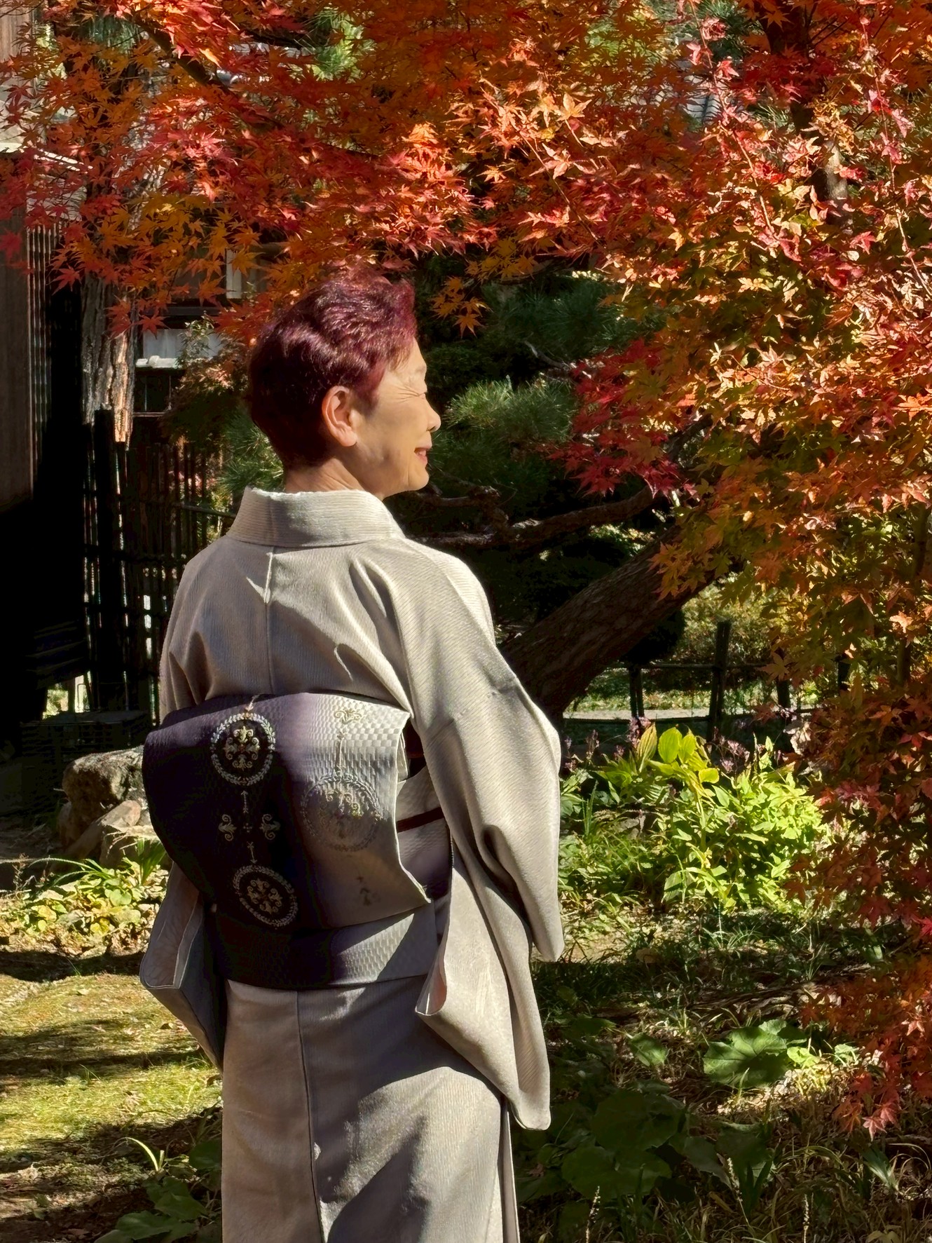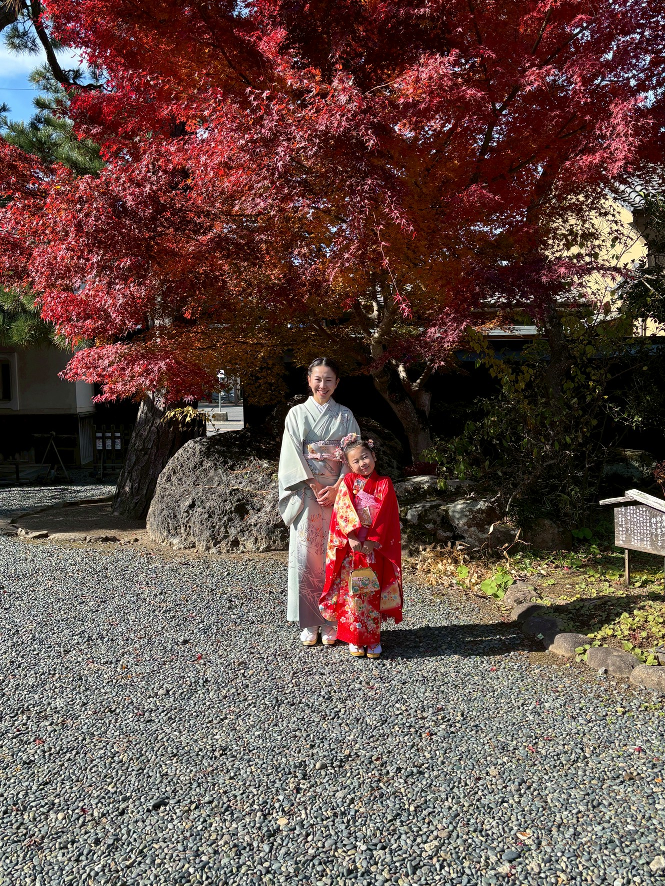 ここ数年で最高の紅葉で、素敵な着物姿と調和して秋らしい写真が撮れました。